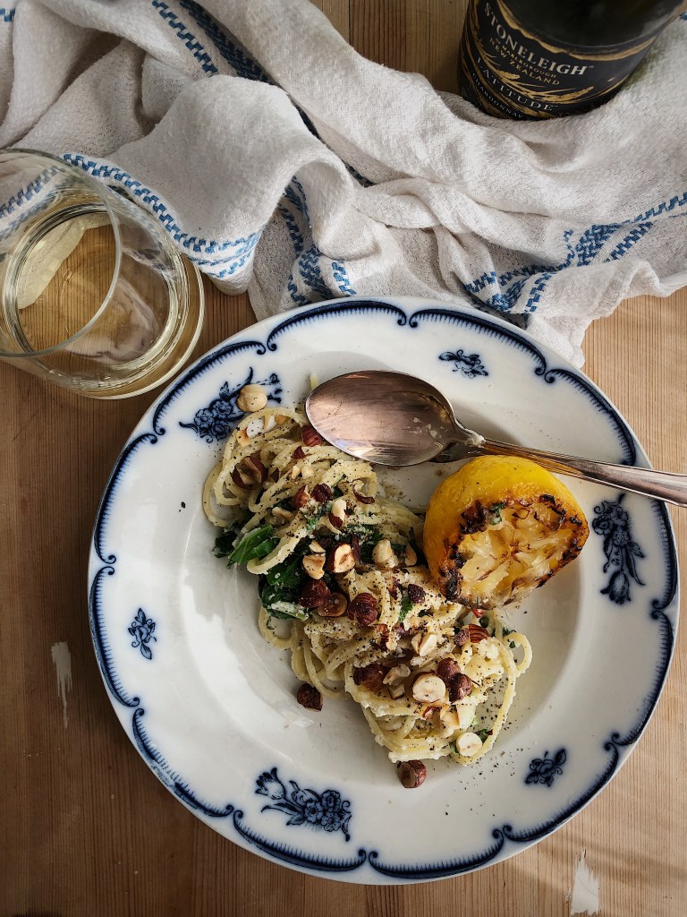 - Häll av pastavattnet, blanda pastan med kronärtskocksröran och grönkålen. Lägg upp på tallrik och toppa med hasselnötter och kanske lite mer svartpeppar. Avsluta med att pressa den stekta citronen över pastan.