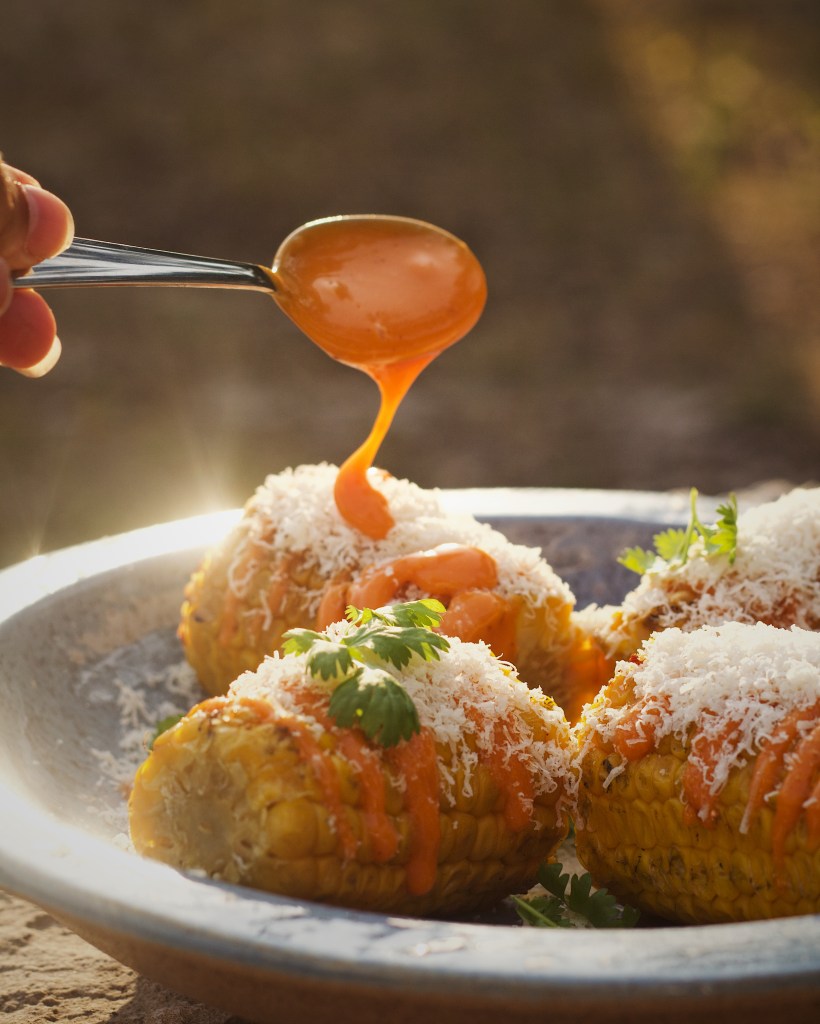 Smaksätt med sriracha (mängd beror på märke, vissa smakar mer än andra) och ev. Lite chilipulver. Låt majonnäsen stå i kylen tills majsen är klar. Grilla majsen tills den fått en fin färg, lite lätt gyllene brukar vara mitt riktmärke.