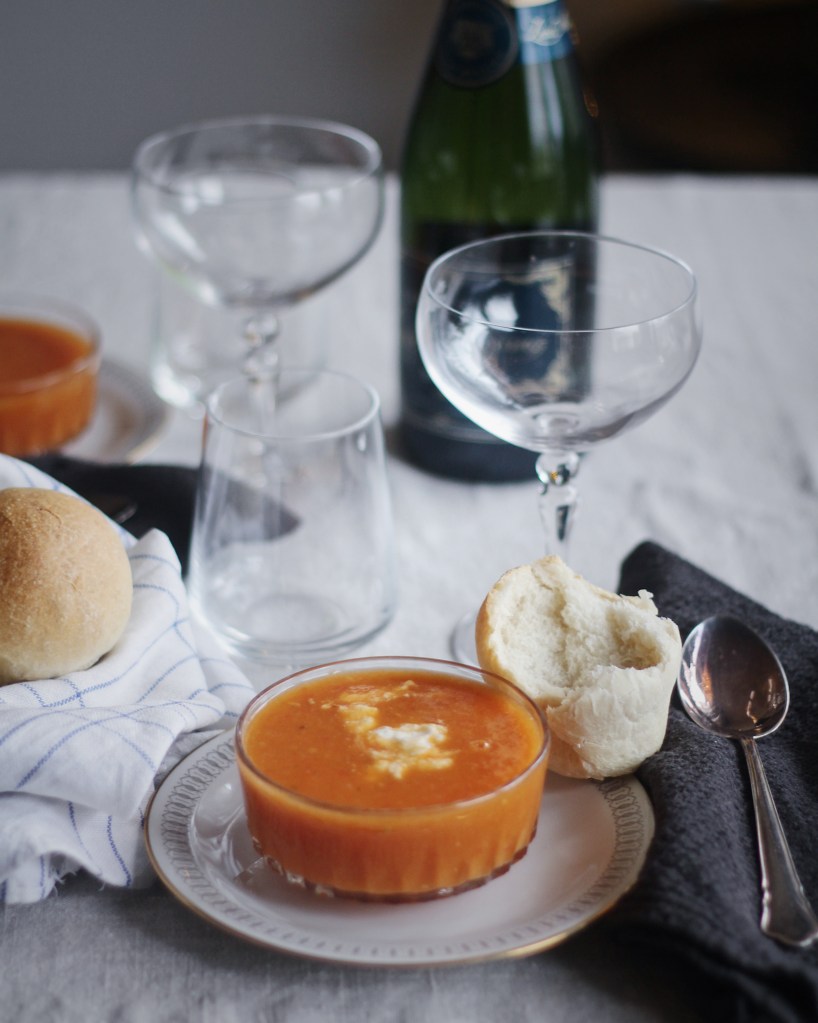 En enkel men ljuvligt god soppa som serveras som förrätt eller huvudrätt med fluffigt vitt bröd!