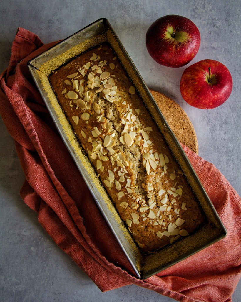 Blanda mjölken med det smälta smöret innan du häller ner det i smeten och rör ordentligt tills du får en jämn smet. Vänd ner det rivna äpplet på slutet.