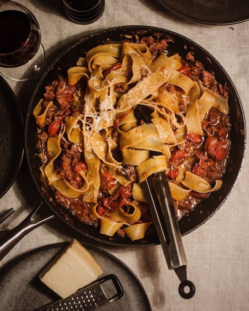 - Låt såsen puttra under tiden som du kokar pastan.