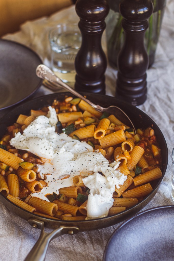 - Servera med burratan utdragen på toppen och ett par extra varv med pepparkvarnen över den.