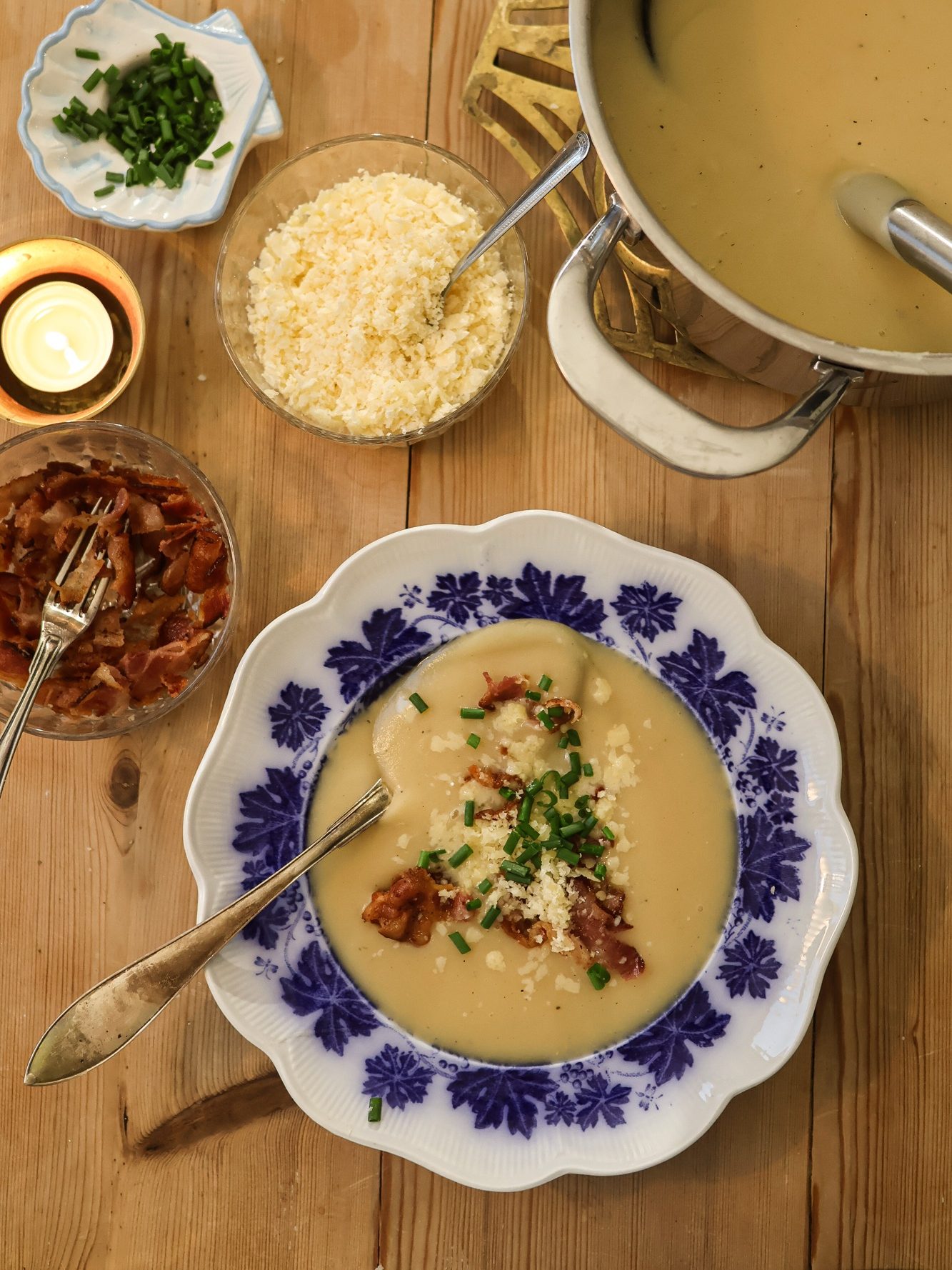 En krämig soppa som i sig är både glutenfri och vegansk, variera dina toppings efter dina kostpreferenser!