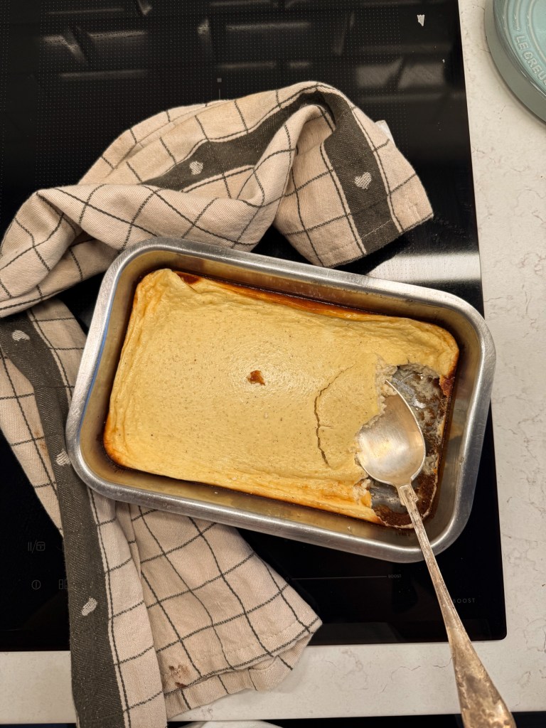 - Blanda alla ingredienser i en bunke. Häll över smeten i en ugnsfast form och baka i ugnen i 20-25 minuter. Du vill att den ska få lite fin färg i kanterna men inte för mycket.